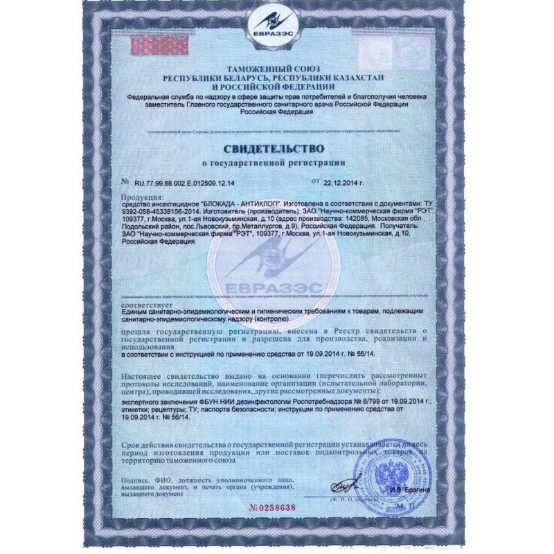 импортер "БиоХимСервис" УНП 190259916. 220099, г.Минск, ул.Казинца, 4, пом.205.